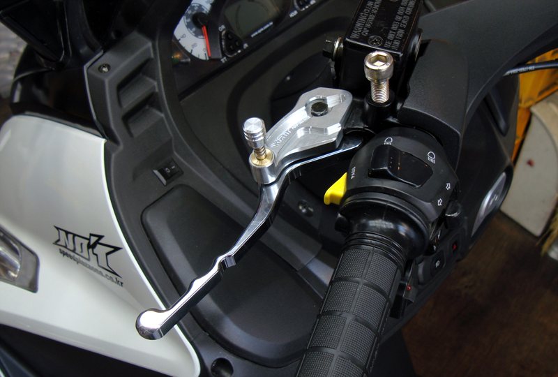 본 제품은 순정 레버에 장착하여 주차 브레이크가 없는 SYM GTS 125.250차종에 주차 브레이크를 추가하는