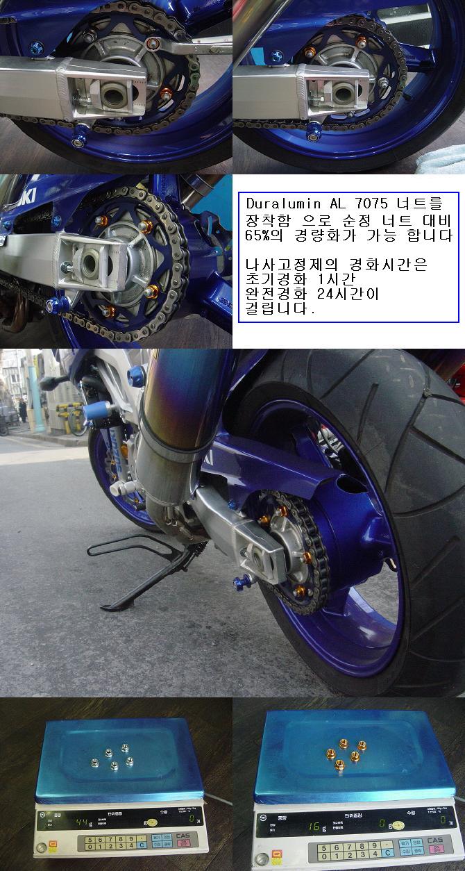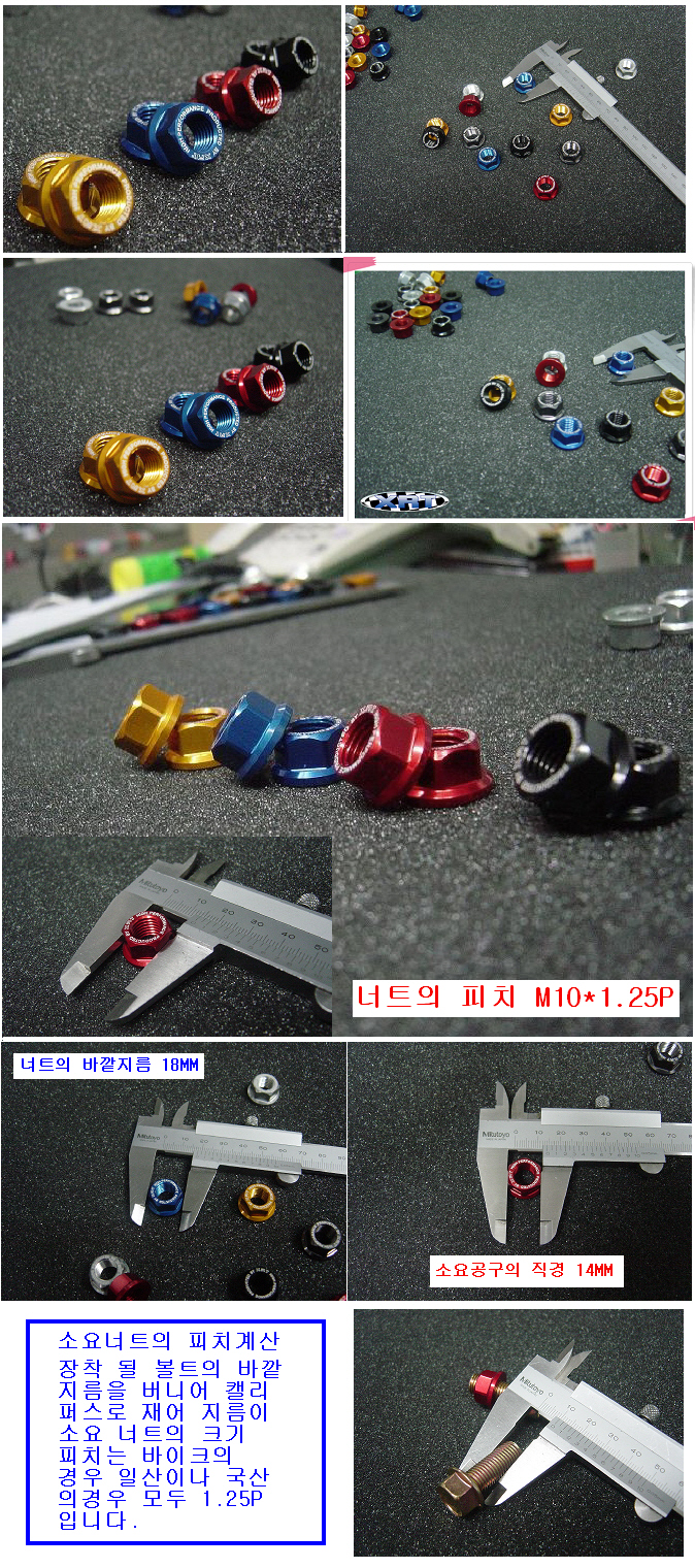 M10 너트가 들어가는 부위라면 어느곳이든 장착리어 스프로켓.엔진 헹거의 너트 ,2피스 휠의 연결부위,